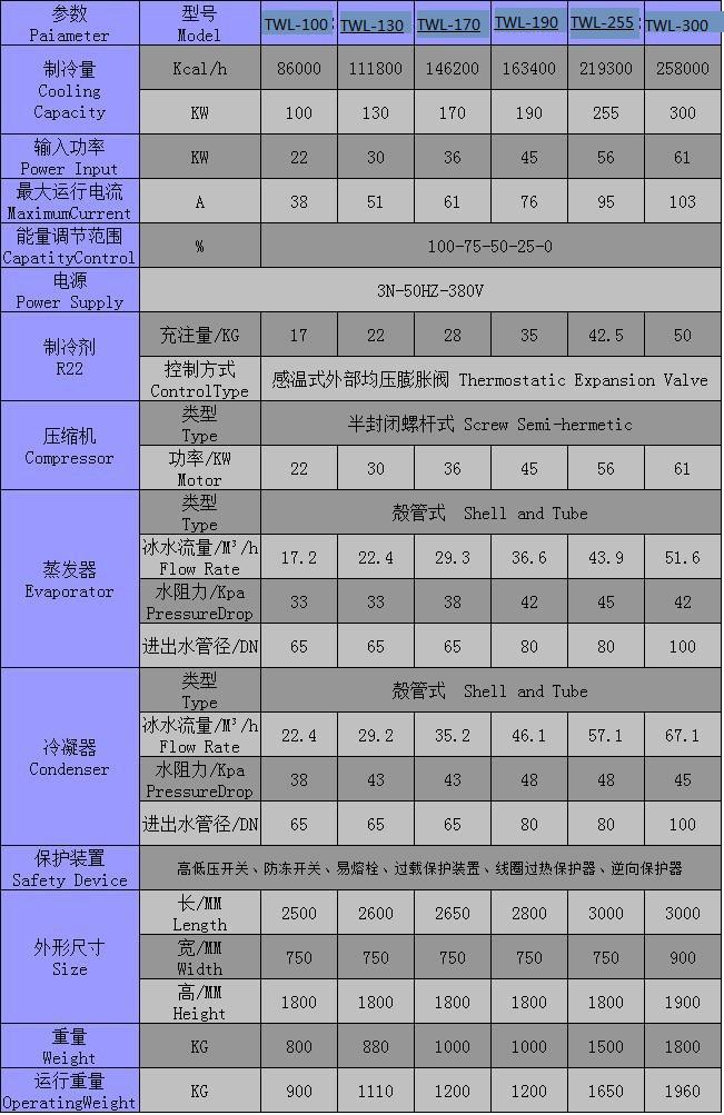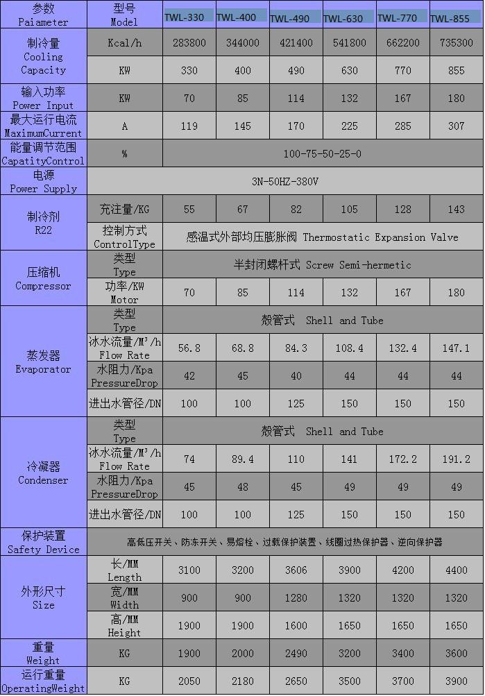 trolled ±2℃名義制冷量是依據冰水入口溫度12℃,出口溫度7℃,環境溫度35℃得出。